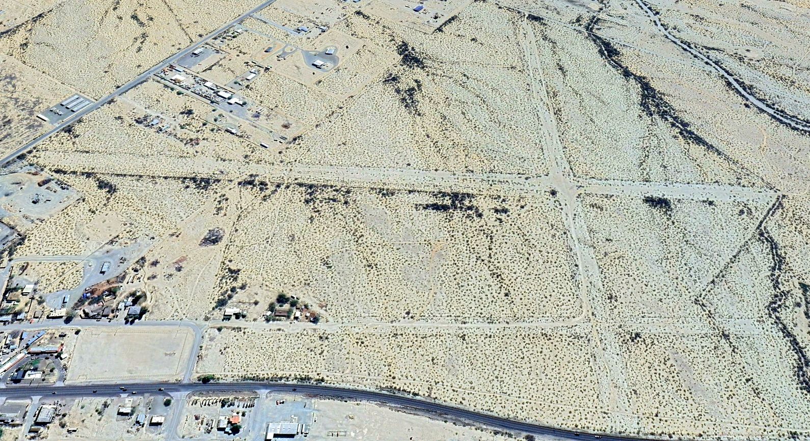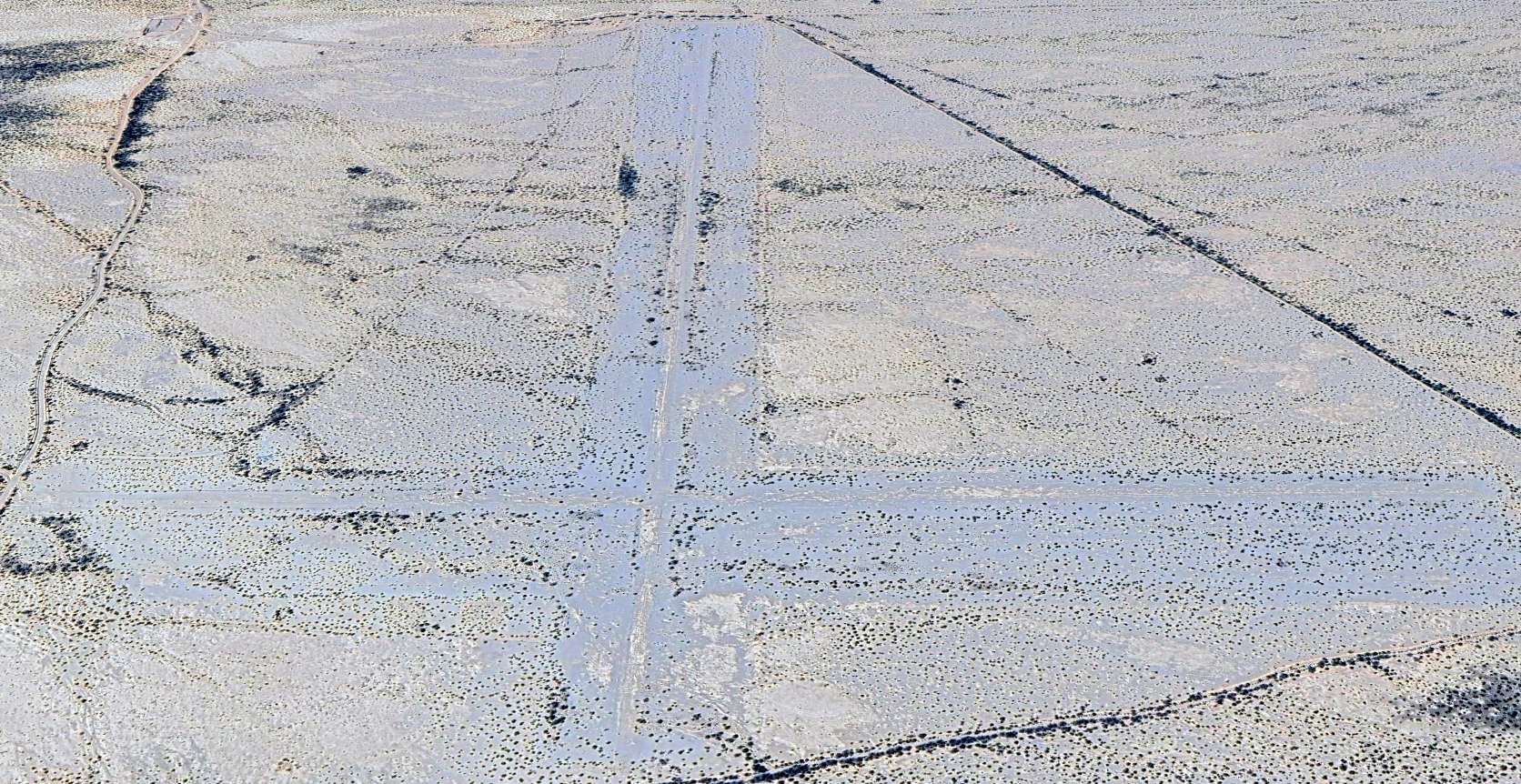 A 2020 aerial view showed the foundation of the former Airport Gardens Dinner House is all that remains at the site of Quartzsite Airport.