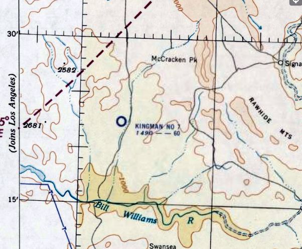 The last aeronautical chart depiction which has been located of Kingman #7 was on the March 1952 Prescott Sectional Chart (according to Chris Kennedy) as having a 6,000' unpaved runway.