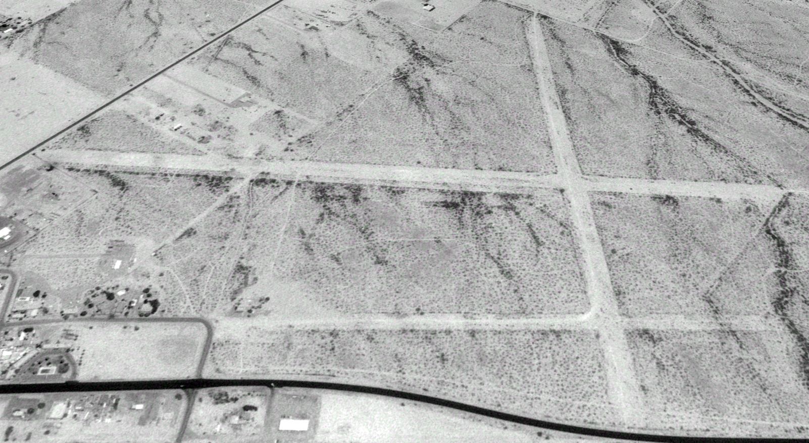 A 1994 USGS aerial view looking north at the site of the original Lake Havasu Airport, after the field's closure.