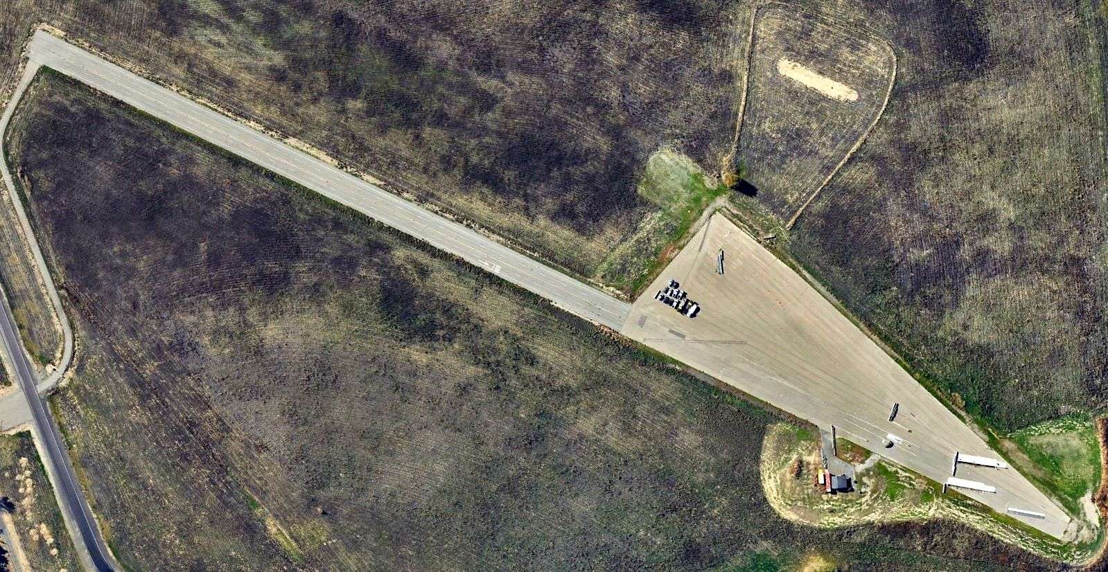 It depicted a single asphalt northeast/southwest runway, marked with “X” symbols at both ends, and with a large triangular extension at the northeast end (which served an unknown purpose).