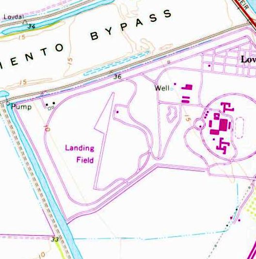 Note the "Natomas Field" legend on the white portion of the hangar at right.