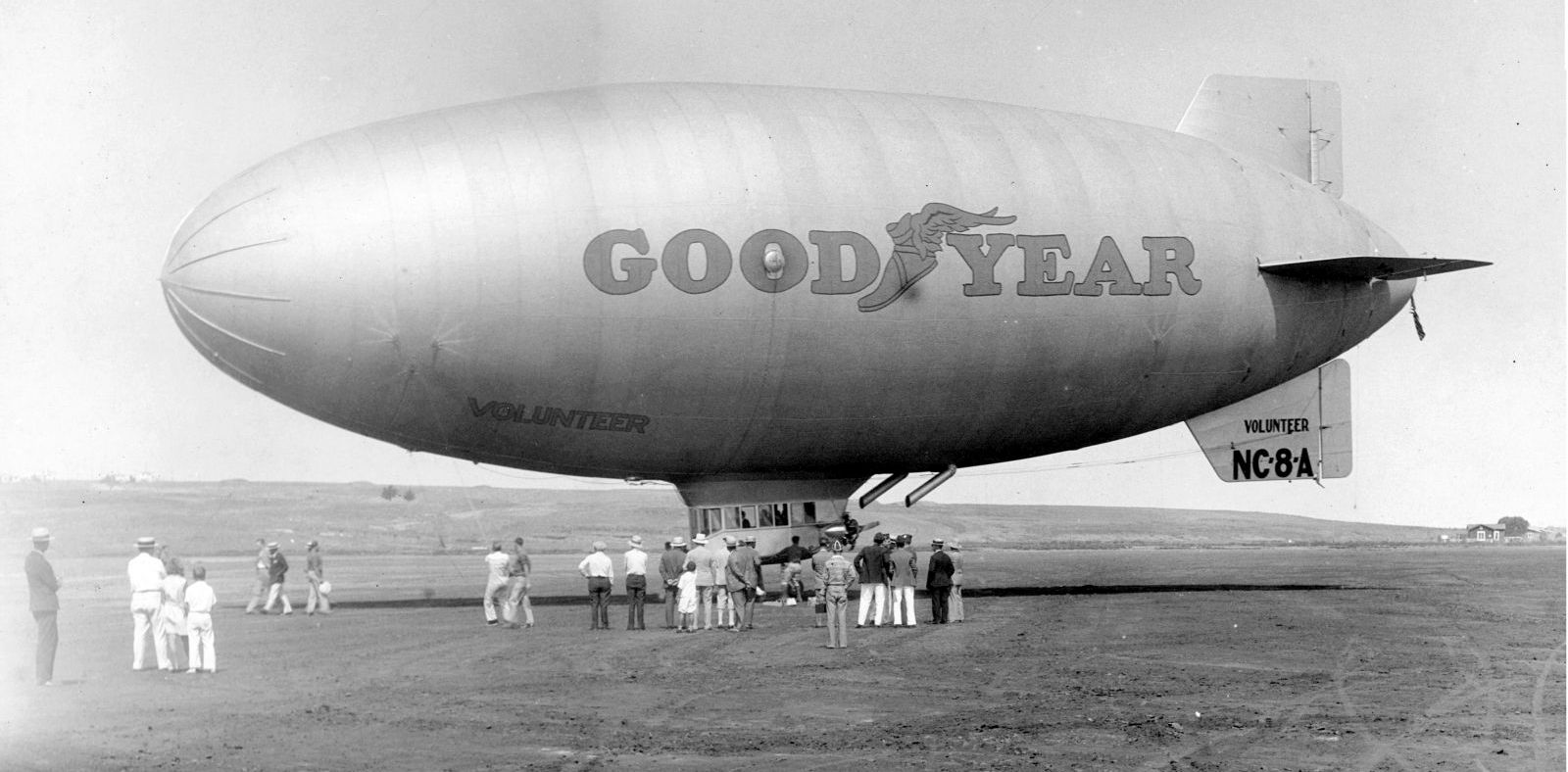 A 1929 photo of Goodyear Blimp Volunteer NC8A at Dutch Flats Airport.