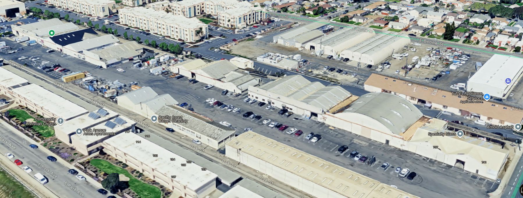 (except for the concrete building on the south side that sits next to College Avenue) are all former Hancock Field Hangars.