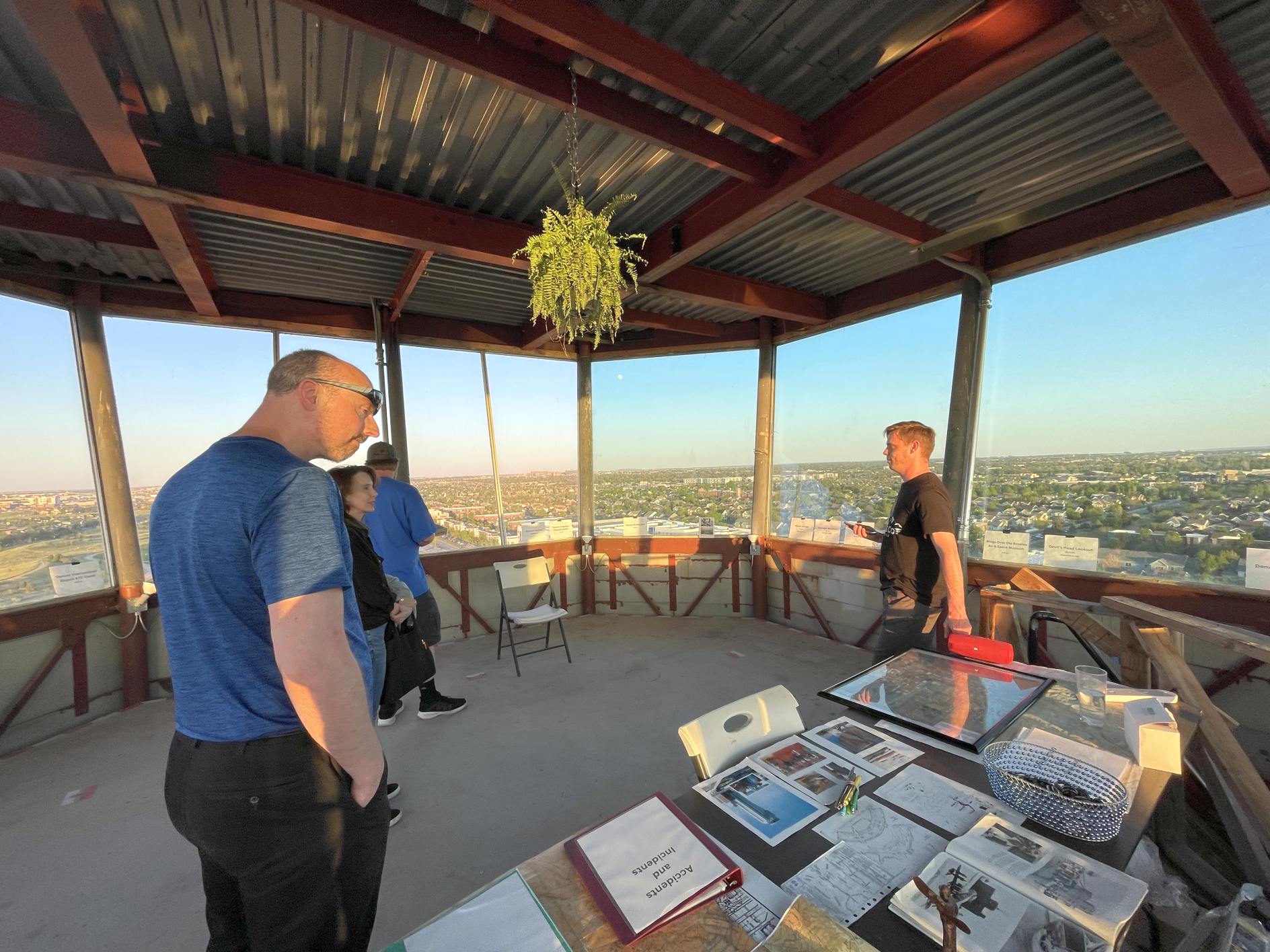 It turns out he thought the Punch Bowl Social management were pranking him & telling him there used to be an airport here - he honestly thought the tower was purely for decoration!