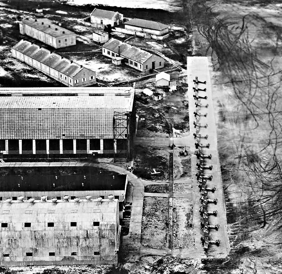 "Several building have been torn down...although all 4 hangars were still standing [including the 2 hangars on the seaplane ramp].