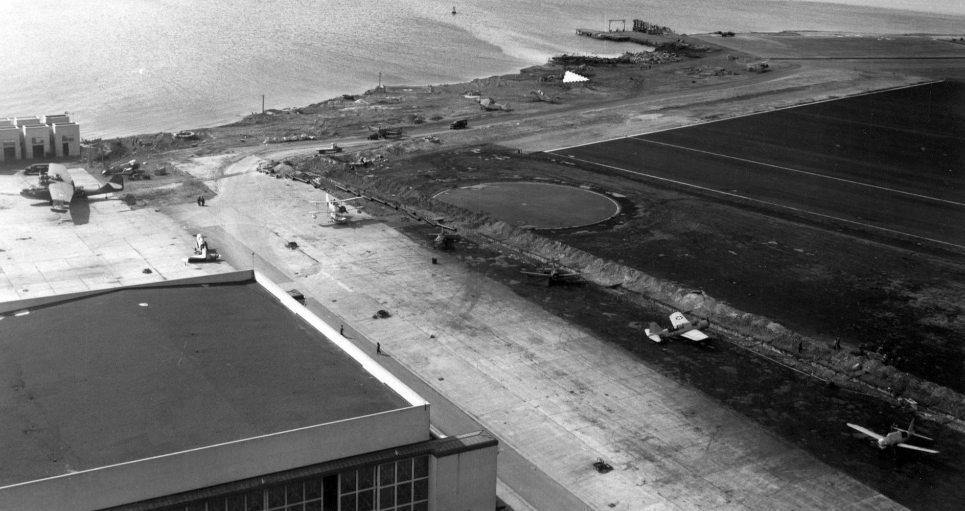 A stunning aerial photo looking southwest at Bellows Field in May 1944,