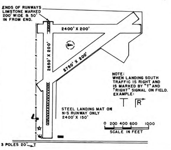 depicted the field as having 4 unpaved runways, with the longest being the 2,600' north/south strip.