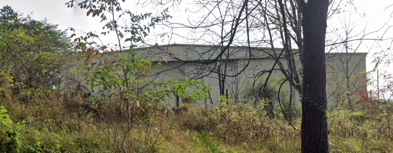A 2024 photo looking east at the former Williamsburg Cumberland Falls Airport hangar.