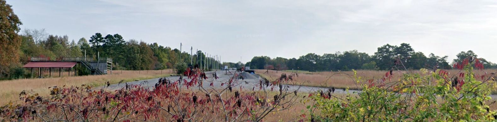 A 2024 photo looking northeast along the former Williamsburg Cumberland Falls Airport runway. Judging by the row of poles mounted along the former runway, it appears to have been reused for drag racing.
