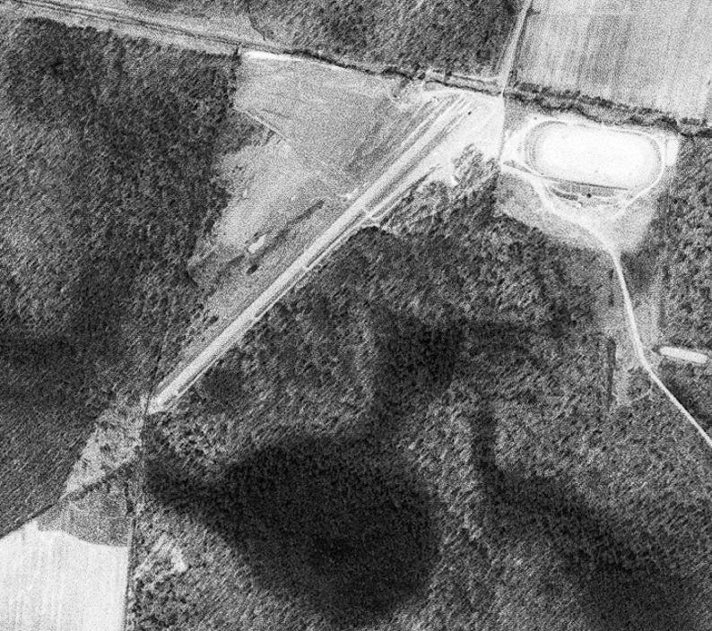 Although the dragstrip pavement looks like a former runway, apparently the West Point Airport runway was always unpaved,