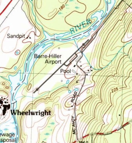 The 1984 USGS topo map depicted “Barre-Hiller Airport” as having a single paved northeast/southwest runway.