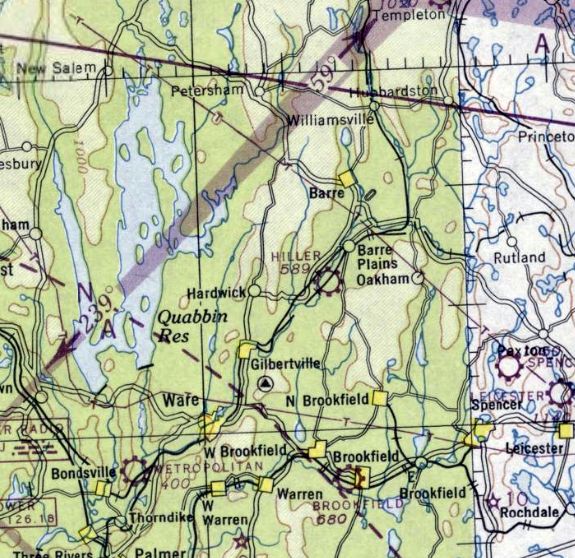 The earliest depiction which has been located of Dudley Intermediate Field was on the 1924 NY-Boston Strip Chart (courtesy of Jonathan Westerling).