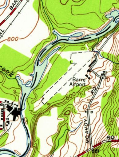 It depicted “Barre Aiport” as having a single unpaved northeast/southwest runway, with several small buildings on the east side.