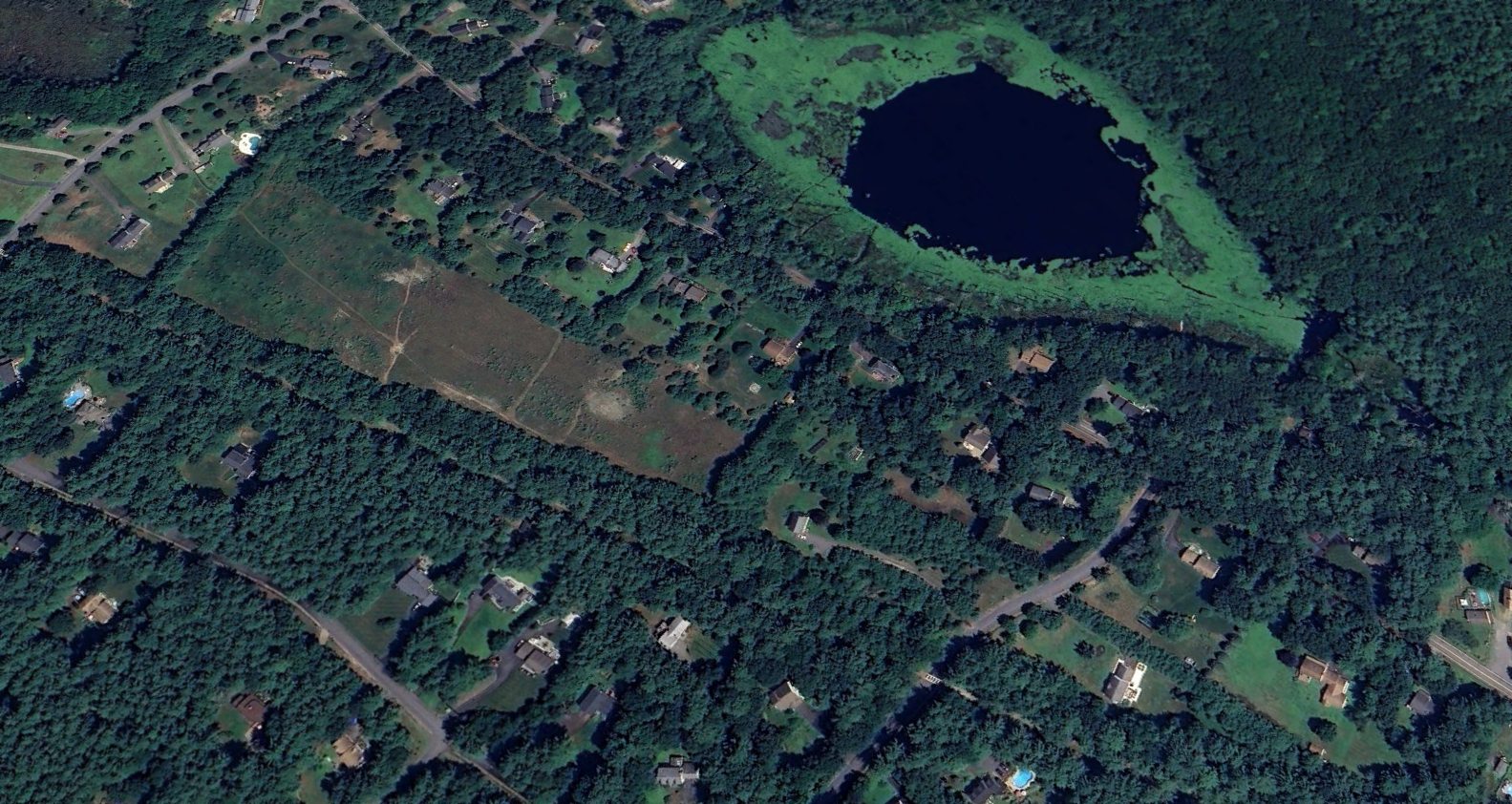 A 2024 aerial photo looking northeast showed the only trace remaining of Groton Airport being the overall shape of the clearing.