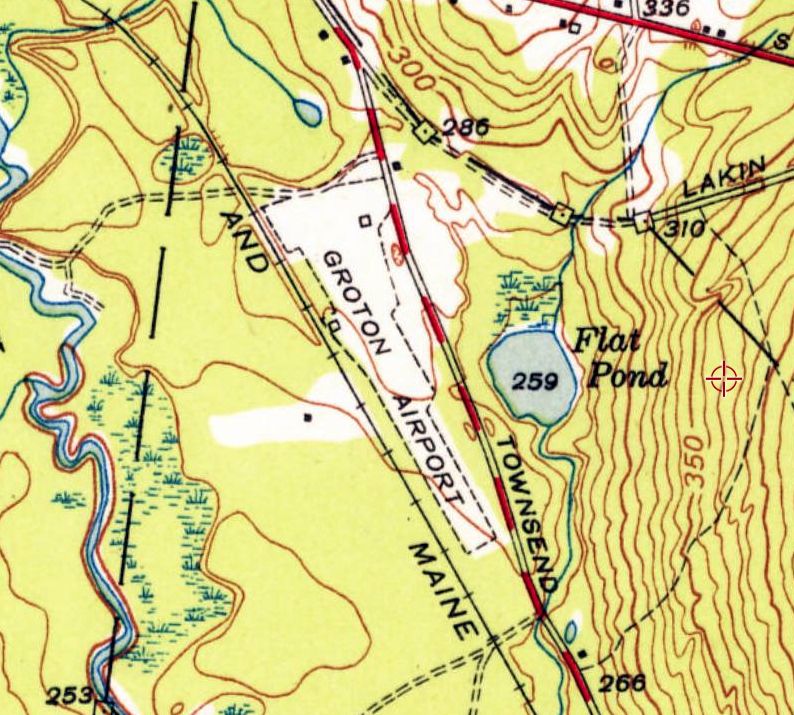 According to the Groton Industry Exhibit (courtesy of Anthony Fusaro), “Britt Airway, in 1942, bought land in the Northwest part of town & established the first airport in Groton near the Townsend & Pepperell lines.