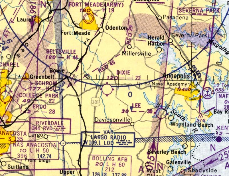 The last depiction which has been located of Annapolis Airport was on the July 1950 Washington Sectional Chart.