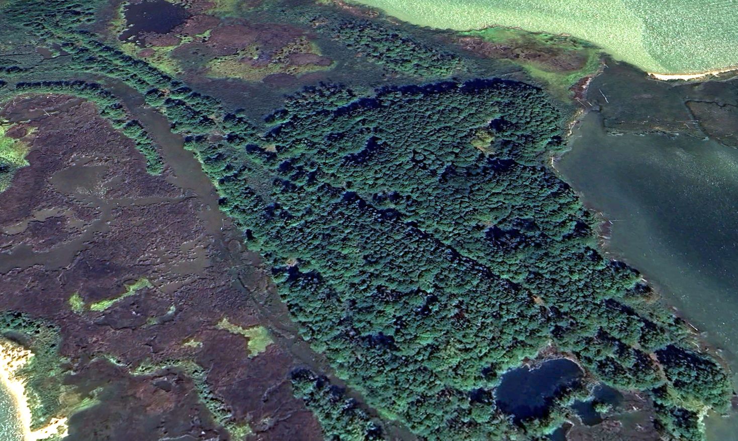A 2024 aerial view looking north showed the Barren Island runway to be overgrown still barely recognizable.