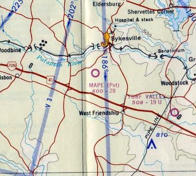Turf Valley Airport, as depicted on the 1964 Washington Sectional Chart (courtesy of John Voss).