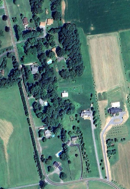 Susan remarked, "Yes, his hangar was located behind the barns." Jim Blanchard observed, “The barns look like they're on the left (north) side of the property, which would put them closest to the airstrip.”