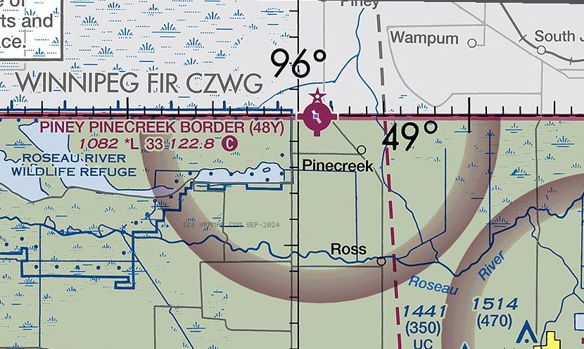 Piney Pinecreek Border Airport was not yet depicted on the November 1951 Lake of the Woods Sectional Chart.