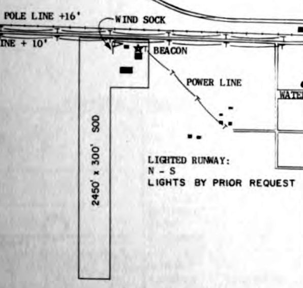 It depicted the field as having a single north/south grass runway, with an office building & hangar at the northeast end.