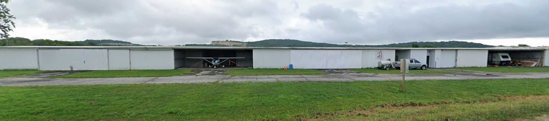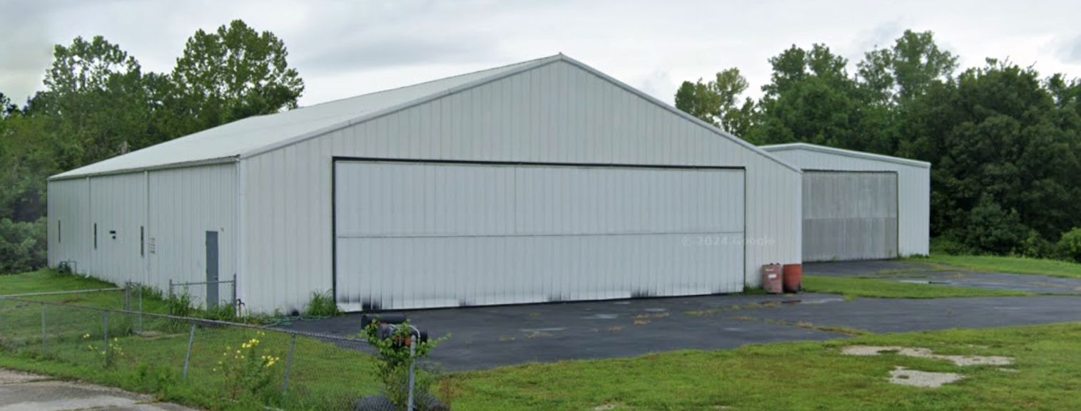 A 2022 photo looking northwest at 2 Festus Memorial Airport hangars.