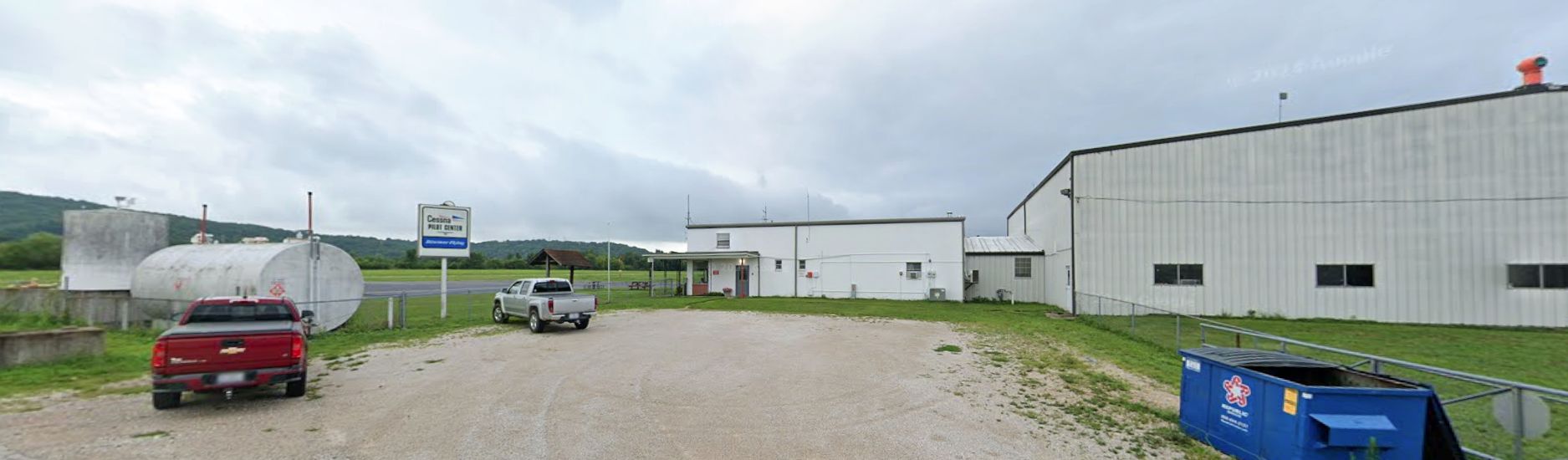 A 2022 photo looking south at the Cessna Pilot Center sign at Festus Memorial Airport.