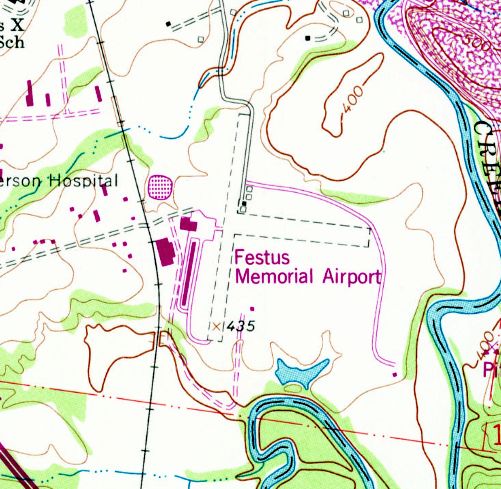 At some point between 1965-82, the airport was evidently renamed Festus Memorial Airport, as that is how it was labeled on the 1982 USGS topo map.