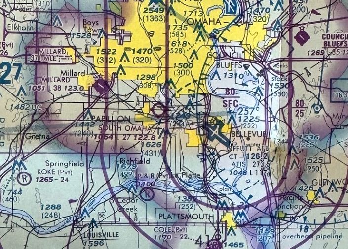 The location of Ak-Sar-Ben Field, as depicted on the 5/1/23 Commerce Department Airway Bulletin (courtesy of Mike Denja).