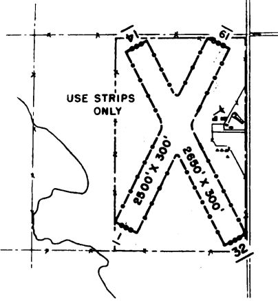 The 1950 NE Airport Directory (courtesy of Lee Corbin) depicted Harrison Municipal Airport as having 2 bare runways, measuring 2,850' northwest/southeast & 2,250' north/south.