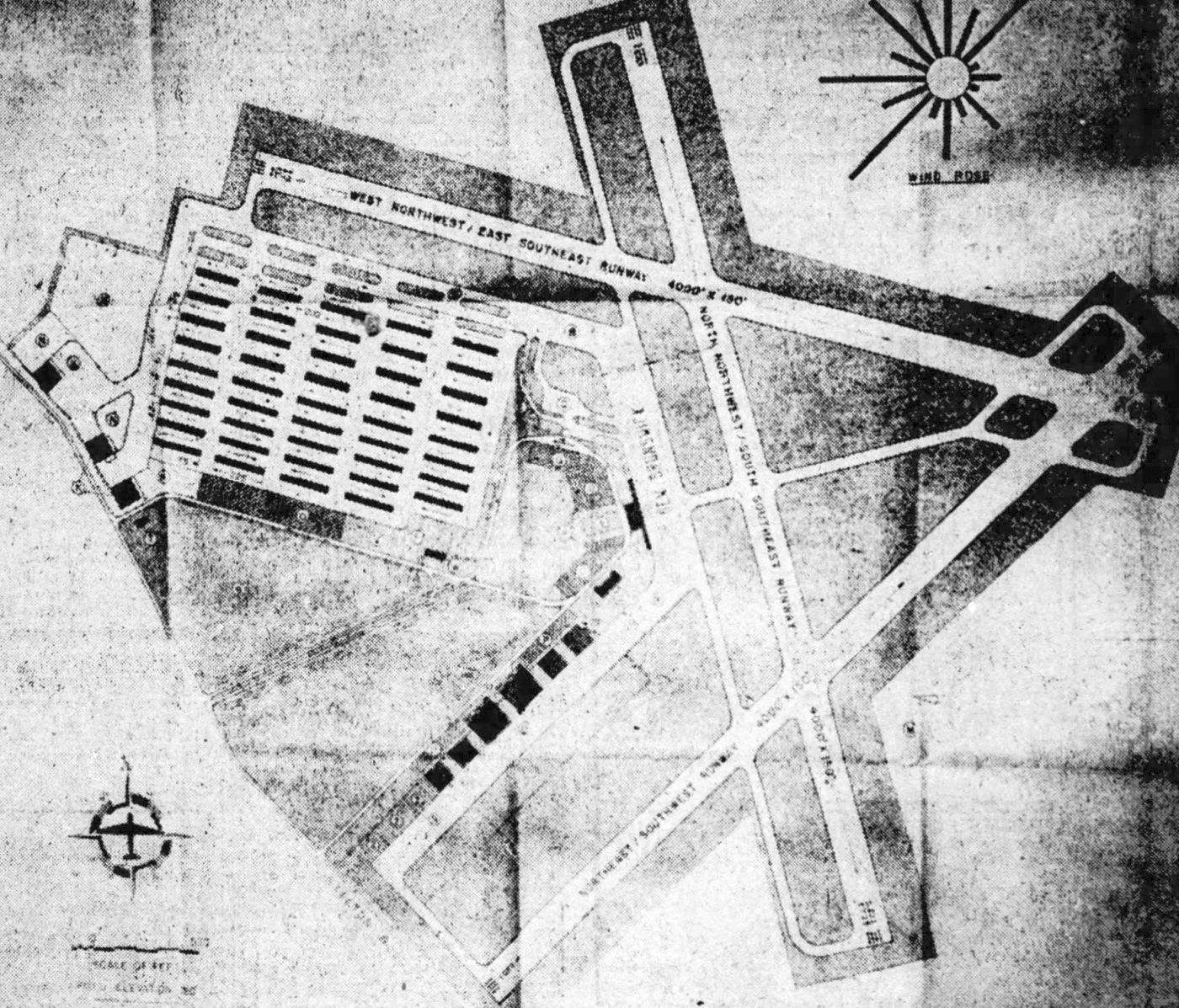 It was said to consist of a 30 acre irregularly-shaped property, having 2 sandy runways, measuring 2,150' northwest/southeast & 1,600'.