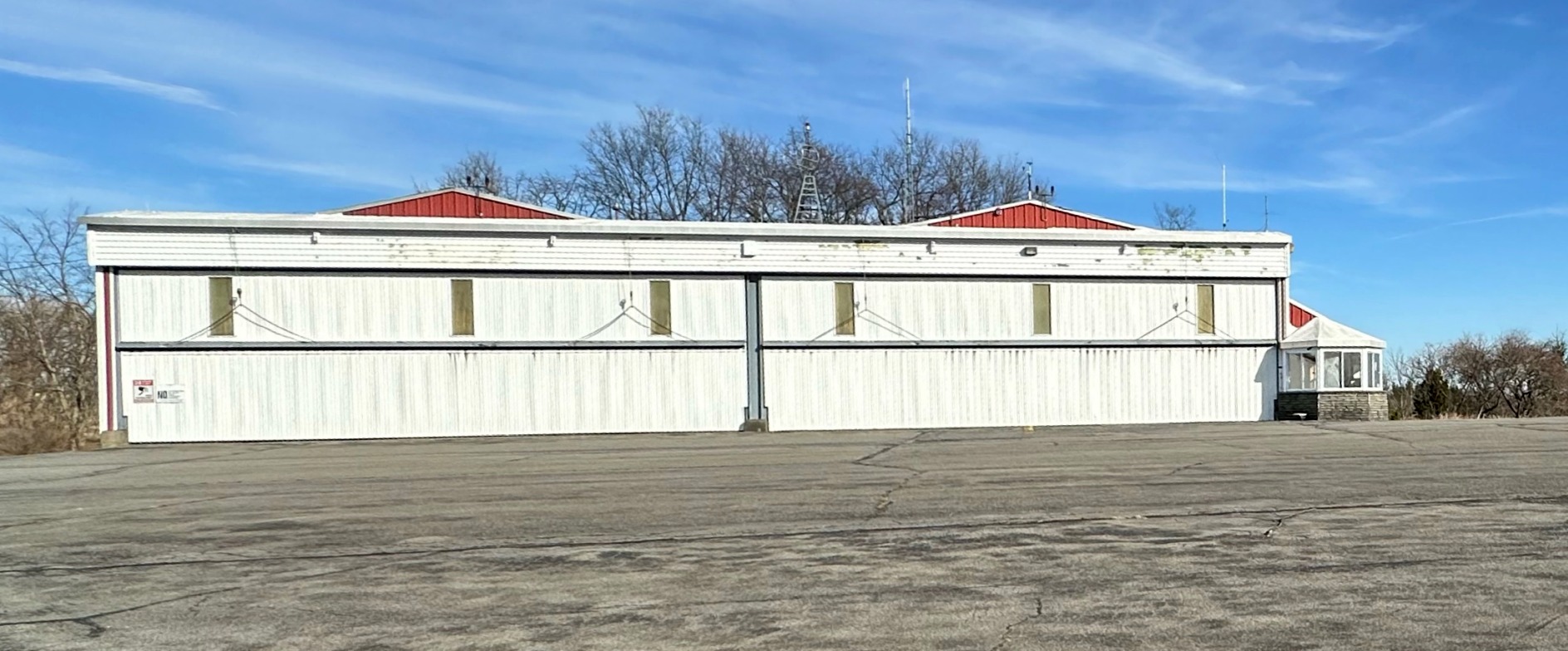 A 2023 photo looking northeast at the former Kingston Airport hangar.
