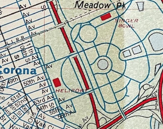 The Worlds Fair Heliport was still depicted on a 1966 map (courtesy of Kevin Walsh), labeled simply as “Heliport”.