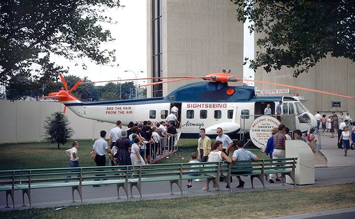 New York Airways operated flights to JFK Airport, Newark Airport, and the Downtown Manhattan Heliport, as well as sightseeing flights across the fairground.