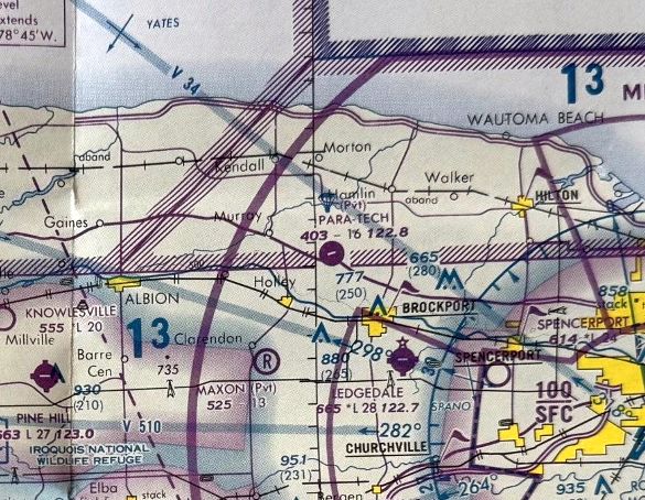 The last aeronautical chart depiction which has been located of Ridgeway Airpark was on the November 1957 Albany Sectional Chart.