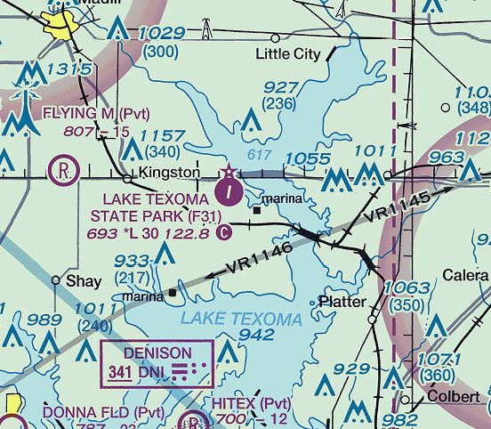 Lake Texoma State Park Airport, as depicted on the March 1959 OK City Sectional Chart.
