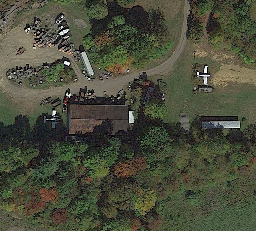 A 2016 aerial view looking north showed the former Pittsburgh Metro Airport runway & hangars remained intact, with trucks lining the former runway.