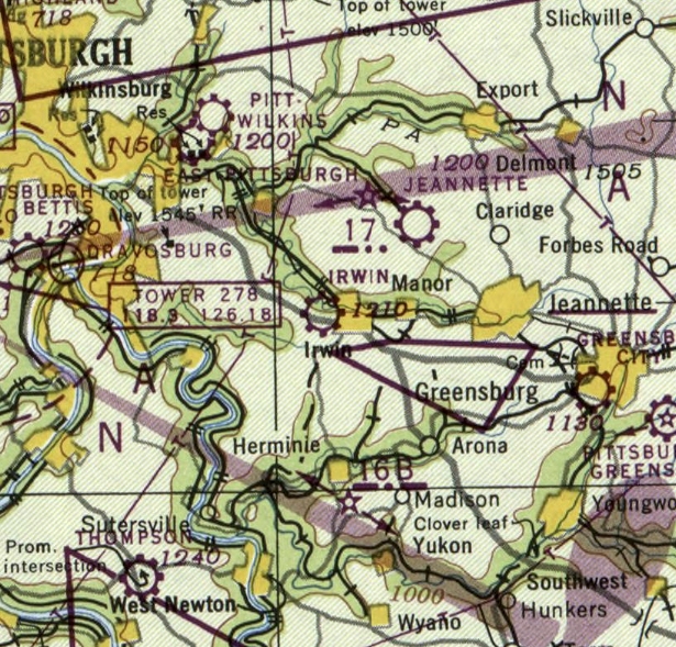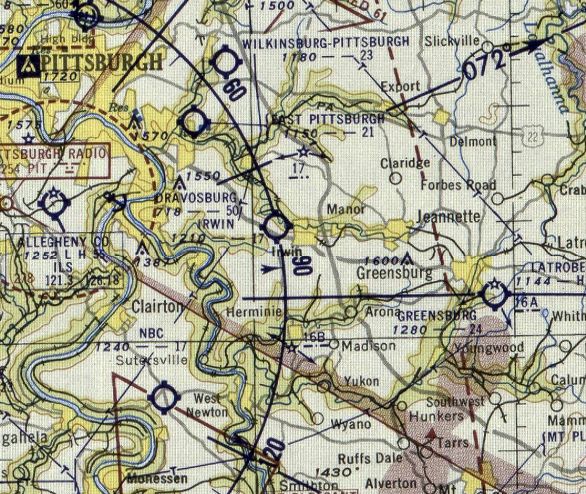The 1976 Pittsburgh Local Aeronautical Chart (courtesy of Mike Keefe)