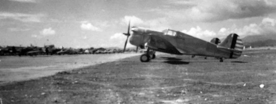 A circa 1941-42 photo of an Army 36th Pursuit Group Curtiss P-40C Warhawk fighter landing at Losey Field.