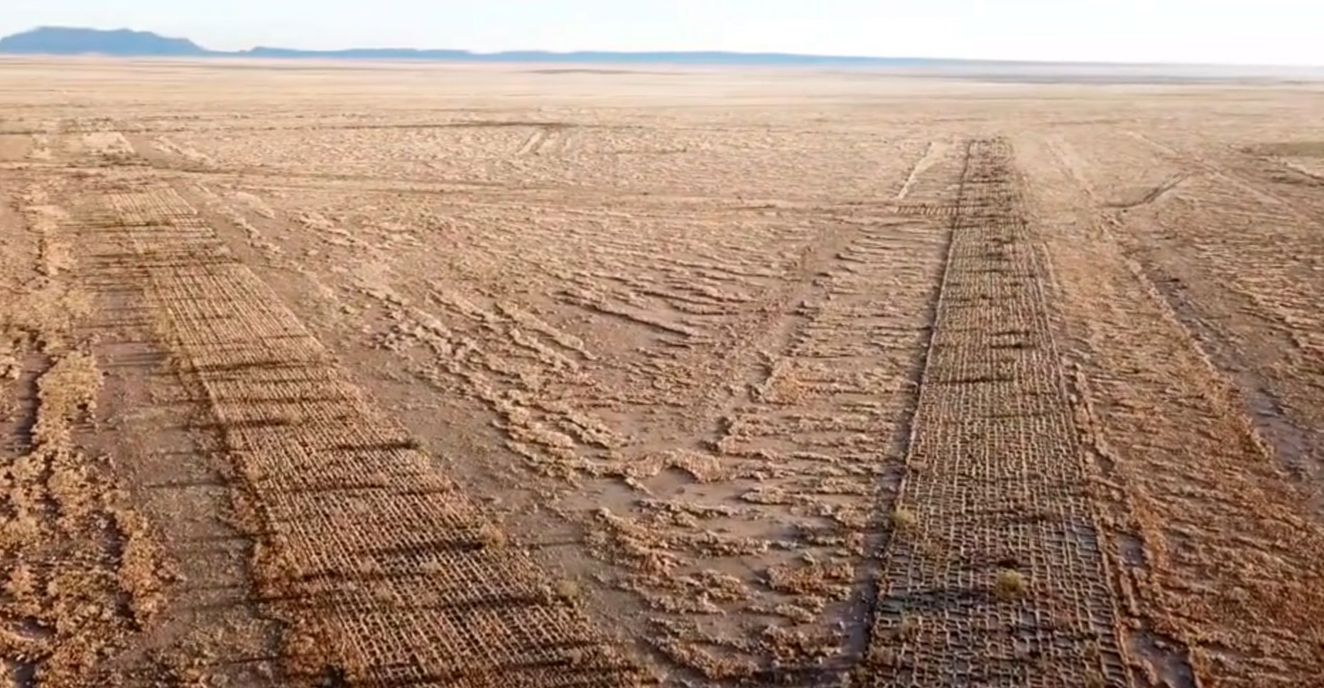 A 2019 aerial view looking east showed the runways of Marfa Auxiliary AAF #2 have deteriorated greatly, but were still recognizable.