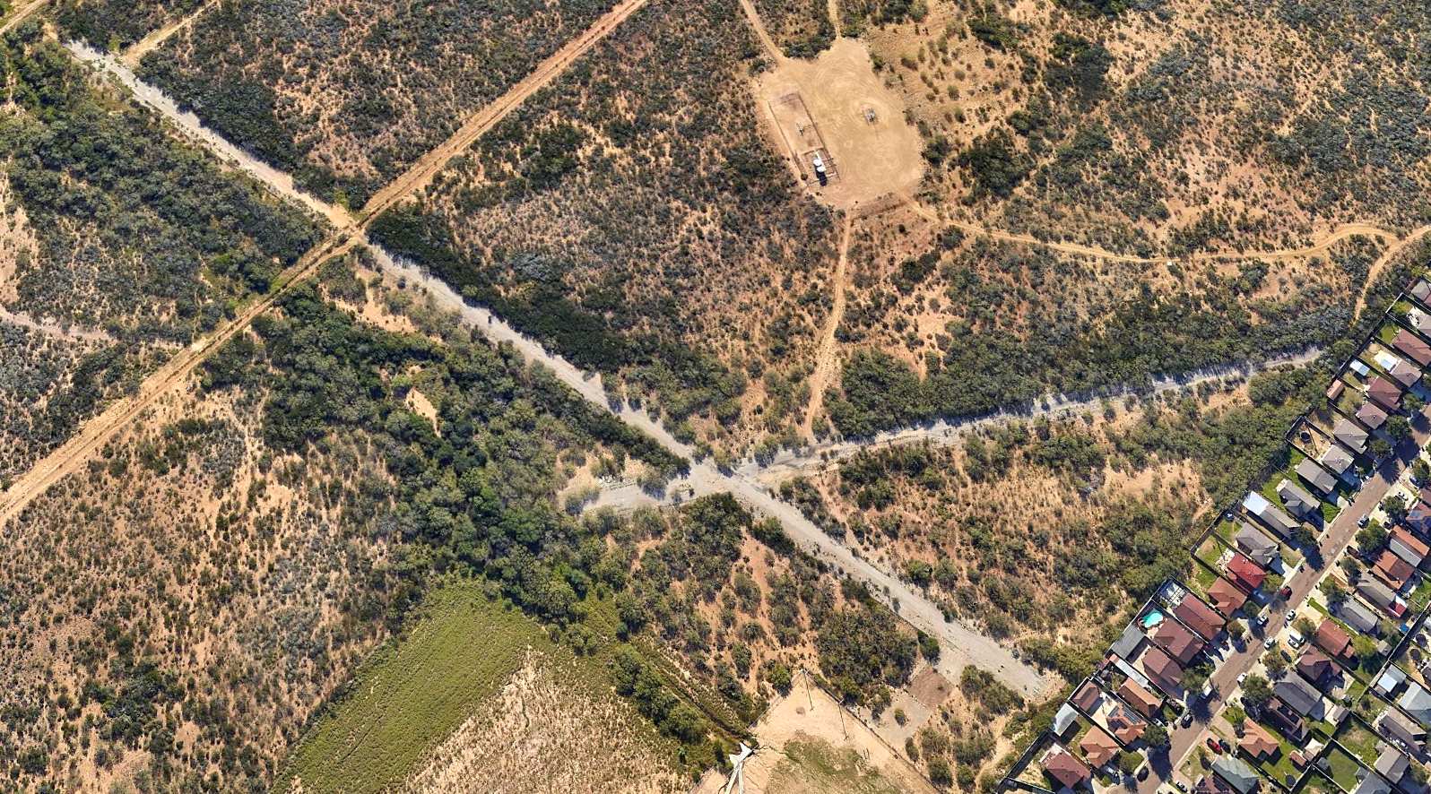 A 2017 aerial view showed portions of all 3 former Val Verde County Airport runways remained recognizable, though the site has been progressively covered by more housing.