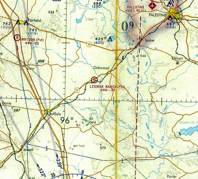 Lesikar Ranch Airfield, as depicted on the September 1972 Houston Sectional Chart (courtesy of Woody Lesikar).