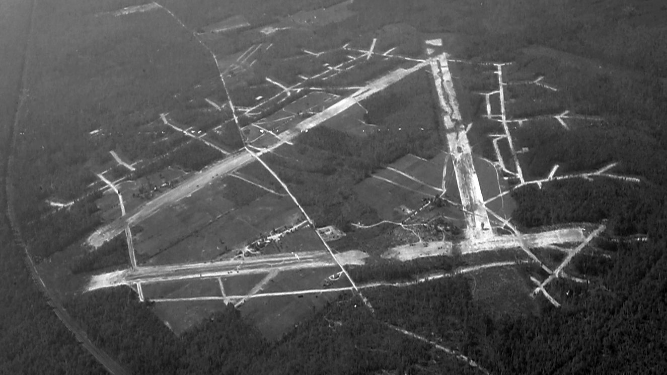 with 3 runways & an extensive network of taxiways & aircraft dispersal pads carved into the surrounding woods.