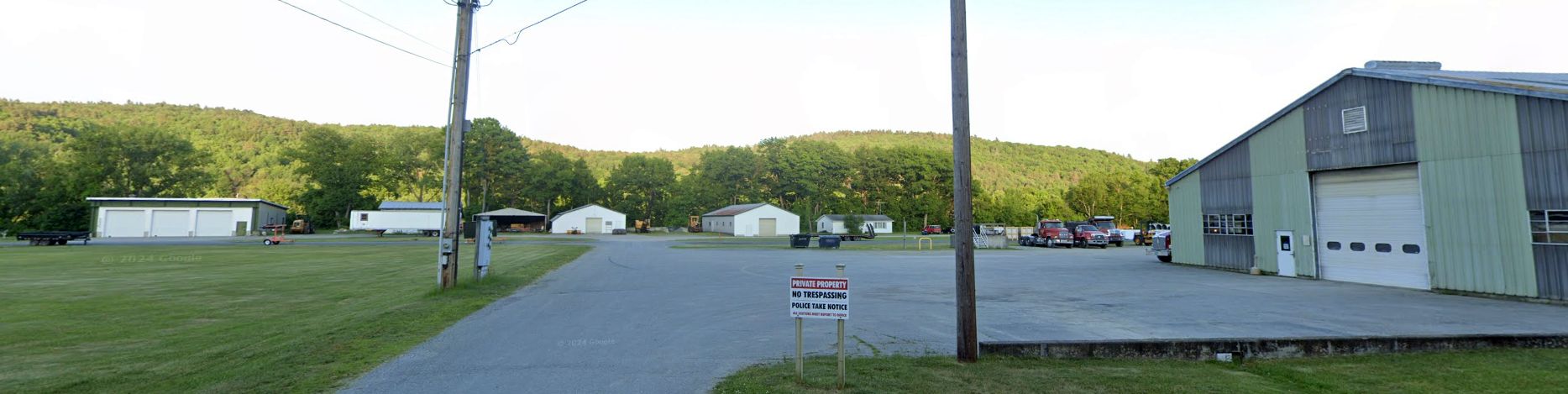 An undated photo of Deerfield Valley Regional Airport's hangars from a 2021 For Sale listing.