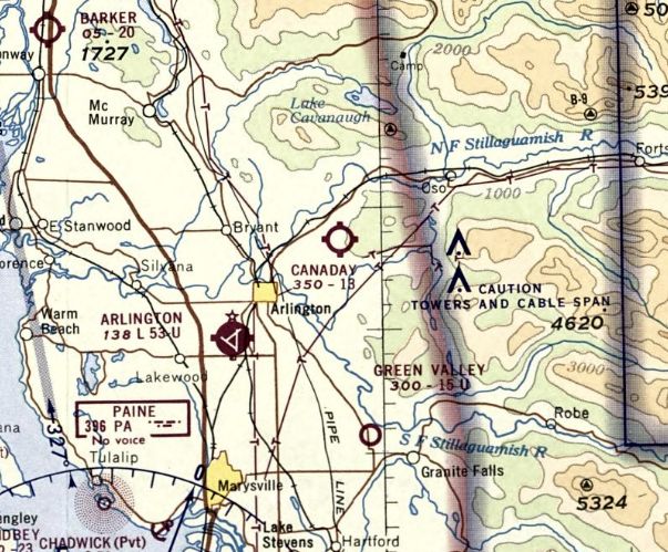 The last depiction which has been located of Canaday Field was on the 1971 Bellingham Sectional Chart, which depicted it as having a mere 1,300' unpaved runway.