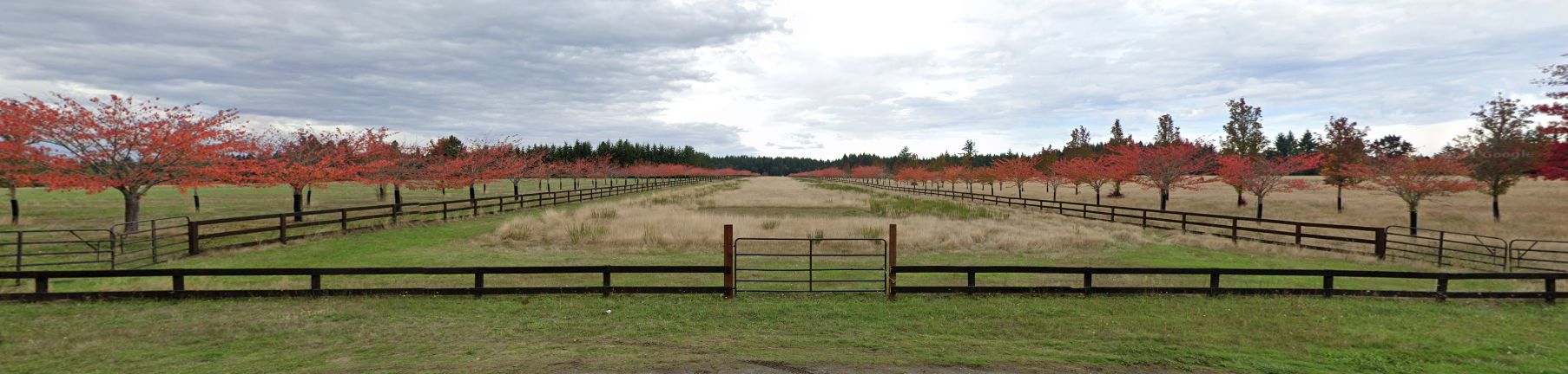 An October 2021 photo looking north showed the former Wax Orchards Airport runway as being fenced off.