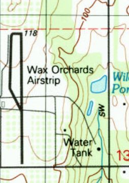 It depicted Wax Orchards as a private airfield having a 2,000' unpaved runway.