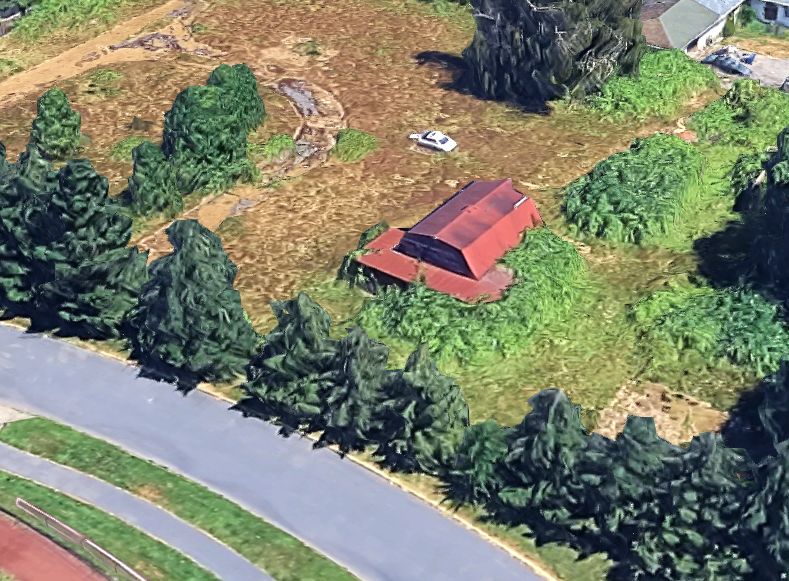 A 2024 aerial view looking southeast showed several small buildings had been built over the center of the former Wax Orchards Airport runway.