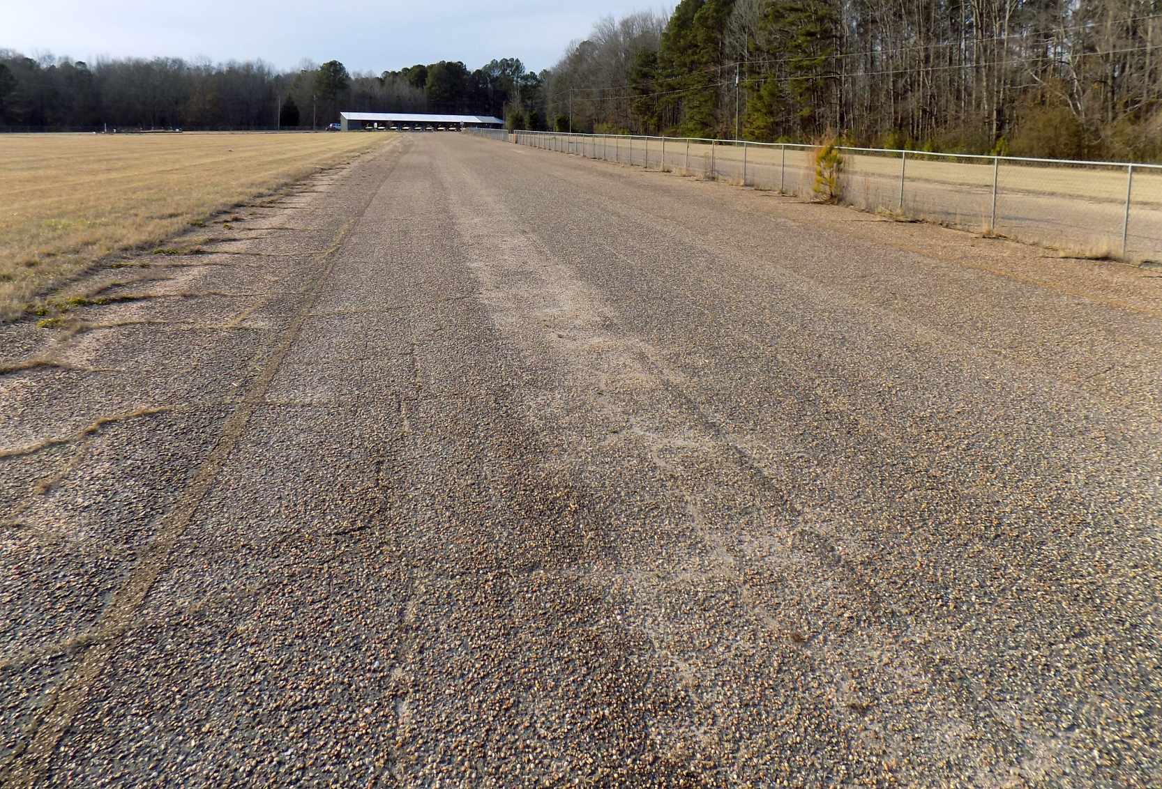 A December 2023 photo looking southeast at the northwest end of Eutaw Municipal Airport Runway 16.