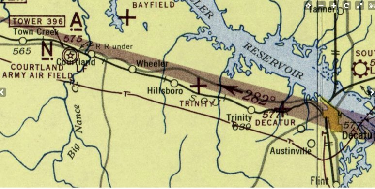 The earliest depiction which has been located of Trinity Field was on the March 1944 Chattanooga Sectional Chart (courtesy of Rob Grant).